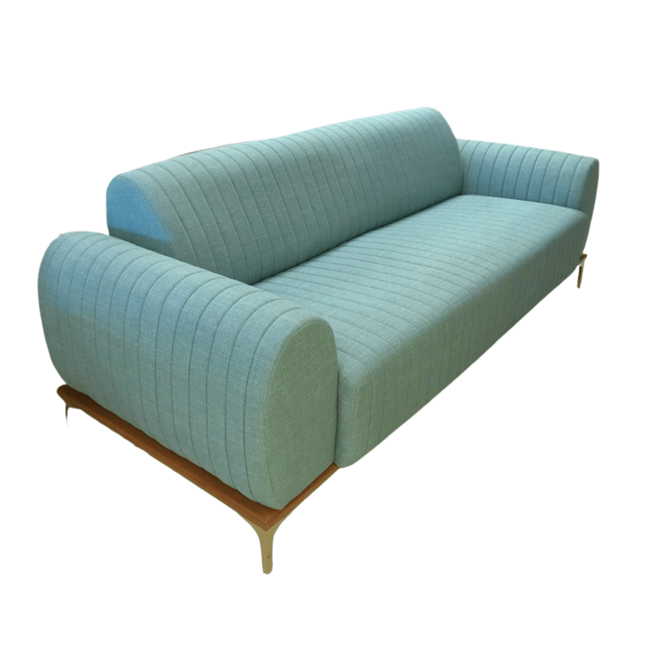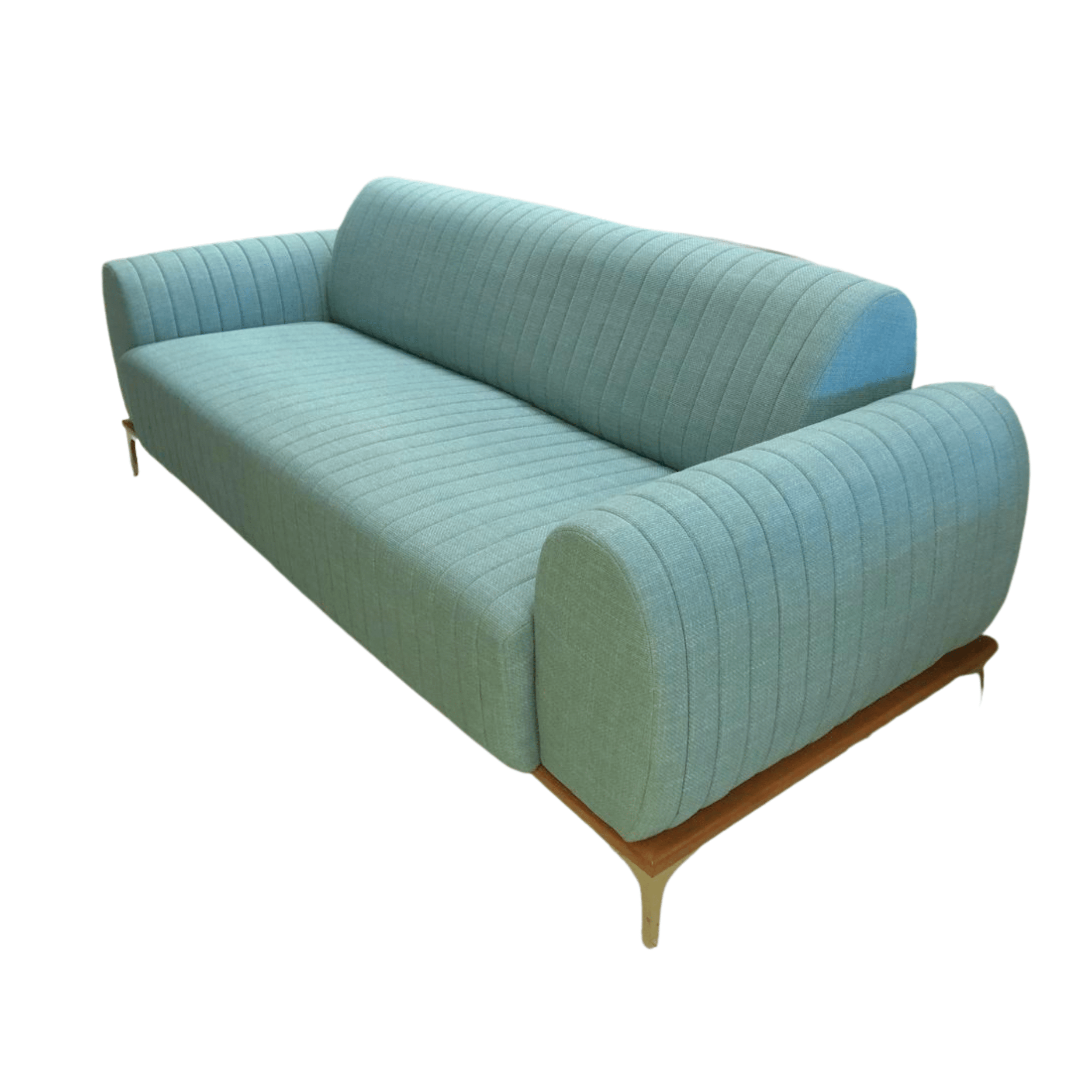Sofá Living Modelo Hug Tamanhos 210 Base Madeira com Pés Aço Carbono cor Dourado em Tecido Linho – PRONTA ENTREGA
